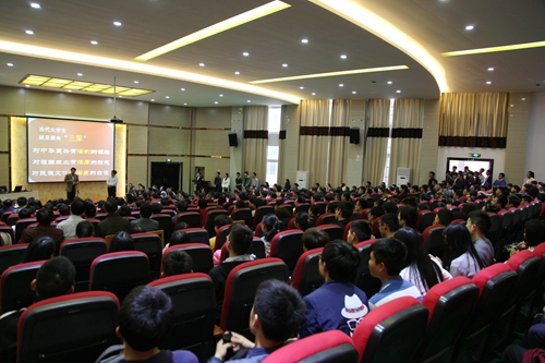 郑强的演讲观点犀利,语言生动,引人深思,渗透了他深刻的见解和渊博的知识,既让人激情四溢,又引人深刻反思,引起了全场师生的强烈共鸣。
