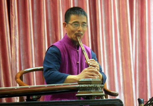 雅集邀请了庐山古乐研修会会长、箫演奏家、箫一堂庐山道场主人、尺八制作传人黄晓峰先生和他的众位弟子做嘉宾。黄先生做了《中国传统古乐赏析》的文化分享,他自述音乐情缘,且谈且弄,从常见的古琴和洞箫,到少见的尺八和陶埙,一一做了讲解和演示,他的演奏以气韵见长,宫商弹奏间深具古代文人行吟之风,从“天籁之音”的尺八演奏《野渡无人》,到“地籁之音”的陶埙《古渡秋》,再到悠远空灵的古琴曲《平沙落雁》,洞箫《梅花三弄》,80分钟分享时间,观众欣赏到了各个器乐艺术的精华曲目,大家纷纷为黄先生精湛的技艺而折服。