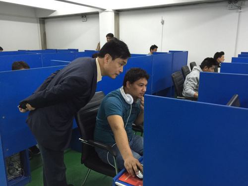 副校长杨耀防巡视了考场,当他看到考试准备充分,考场秩序井然,十分满意。他希望国际交流学院重视留学生的汉语教学工作,要以考促教,激发学生学习汉语的积极性。
