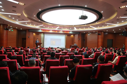 根据中央和省委统一部署,4月22日下午,学校在逸夫图书馆学术报告厅召开“学党章党规、学系列讲话,做合格党员”即“两学一做”学习教育动员会。参加会议的有校党委书记郑翔,副校长吴桃娥、纪岗昌、王万山、陶春元、杨焱林,校纪委书记魏立平,副校长杨耀防以及全校副处级以上干部。会议由党委书记郑翔主持。