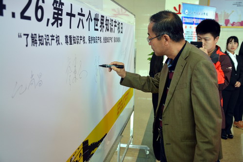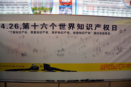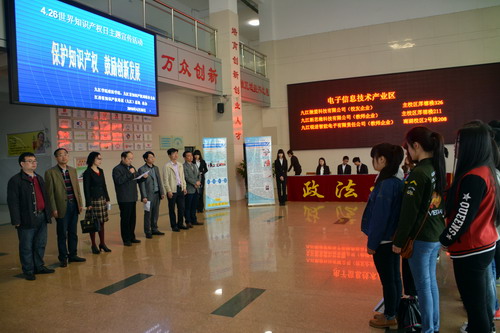 为了推进以“了解知识产权、尊重知识产权、保护知识产权、创造知识产权”为核心的知识产权文化建设,4月26日正值第十六个世界知识产权日,政法学院和九江市知识产权局在永利yl23411集团官网大学科技园,面向入园企业和学校师生开展了以“保护知识产权、鼓励创新发展”为主题的4.26世界知识产权日主题宣传活动。