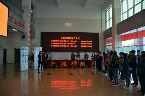 永利yl23411集团官网副校长纪岗昌、九江市知识产权局副局长刘晓英、政法学院院长詹建志、政法学院党委书记高翔、校团委书记闫来英、科研处副处长宋士华出席了此次活动。政法学院李军政博士现场为入园企业提供了知识产权的相关咨询。九江电视台法制频道对活动进行了全程报道。