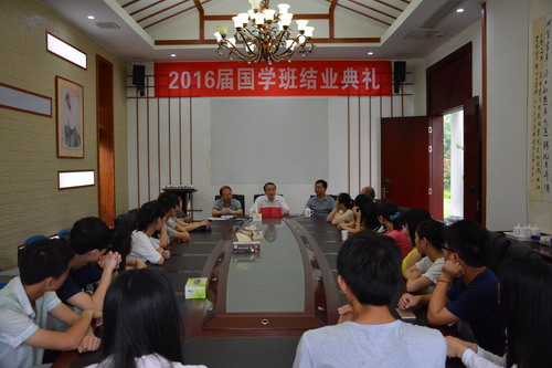 6月20日上午,2016届国学班结业典礼在两南山陶渊明研究院会议室举行,陶春元副校长、教务处张伏龙副处长、庐山文化研究中心常务副主任李宁宁教授、国学班指导老师曹欢荣博士、宋道贵博士,及国学班2016届全体学员共计三十余人参加了此次典礼。