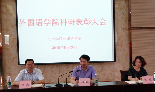 6月28日上午,外国语学院在香远楼三楼学术报告厅召开科研表彰大会,校党委书记郑翔出席会议并讲话,外国语学院全体教职工和科研处、护理学院、政法学院、临床医学院、土建学院、电商学院领导参加了会议,会议由外国语学院党委书记杨杰主持。