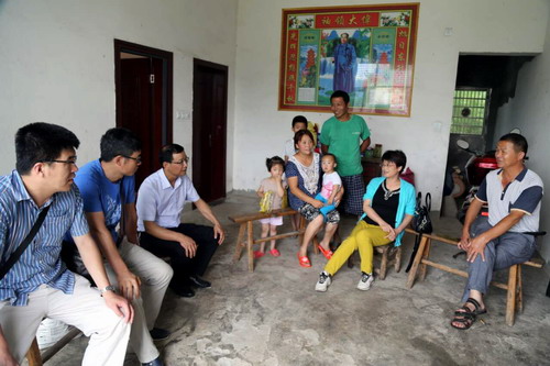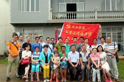 文传学院认真践行“两学一做”,积极开展党员志愿者活动。 7月1日这个特殊的日子,学院教工党支部20余名党员志愿服务者,前往学院精准扶贫点――武宁县官莲乡东山村,看望慰问扶贫对象胡德春一家。