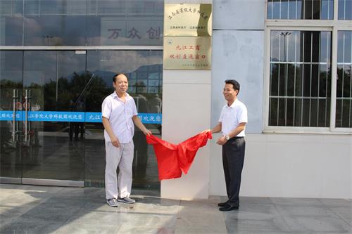 在热烈的掌声中,副校长纪岗昌与市工商局局长郑伟共同为“九江工商九江学院双创直通窗口”揭牌。