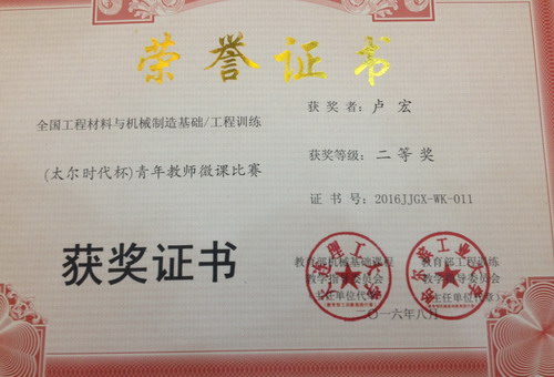 卢宏老师是机材学院金工实习车间指导教师,工作以来,工作认真,积极上进,不断加强理论与实践教学水平的提高。在2016年第七届全国大学生机械创新设计大赛江西赛区的预赛中,与学院金牌指导教师林伟明共同指导学生,作品荣获江西赛区一等奖。
