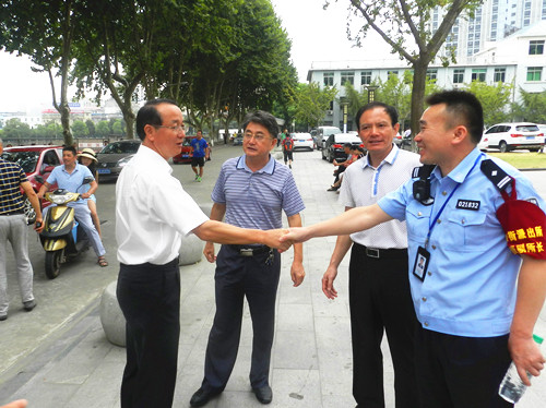 检查过程中,杨晓宁主任就今年浔东校区迎新保卫工作中采取的措施向陶副校长进行了汇报,他说迎新期间校区人流量、车流量均比日常高出几倍,校园内的安全保卫工作是个重点和难点,为了缓解这个压力,校区邀请了辖区派出所来共同协助做好保卫工作,确保迎新工作顺利完成。陶副校长对这一做法表示了肯定,向坚守在报到现场的三里街派出所王所长表示了感谢。