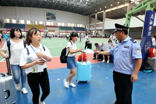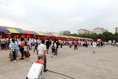 为方便提前来校新生的报到,从9月3日下午开始,九江学院的迎新工作就已经开始。3日下午就有3000余名新生来校报到。9月4日,迎新工作全面展开。一大早,学校相关各部门和各院系的迎新工作人员早早来到新生报名点各就个位,等待着来自全国五湖四海的新生的到来。
