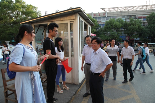 9月22日下午,副校长王万山带队巡查校园限摩禁摩的情况,并进行现场办公解决存在的问题。学生处处长刘平、保卫处处长张晓明等一同巡查校园限摩禁摩。