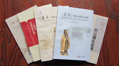 (二)“中华经典公理化诠释”系列成果获关注。自2009年初,以研究中心为依托,以庐山文化研究中心人员为骨干成员,组成了中华经典公理化诠释创新团队,相继推出《〈论语〉的公理化诠释》(2011年)、《〈孟子〉的公理化诠释》(2014年)、《〈荀子〉的公理化诠释》(2015年)以及《〈论语〉的公理化诠释》(中英文对照本2014年)、《〈论语〉的公理化诠释》(中法文对照本2016年)等。 “中华经典的公理化诠释”研究创新团队,通过深入研究儒家思想的原意和本质,用公理化的方法对先秦哲学进行诠释,力图以基本假设、定义、公理为基本要素,推导证明众多蕴含在《论语》等中华经典中的客观命题,便于东西方人士超越不同文化语境的局限,共同地用理性的方式理解和准确把握儒家思想。2014年11月,季羡林基金会授予该团队“儒学传承与创新奖”,清华大学李学勤等学者致信祝贺。