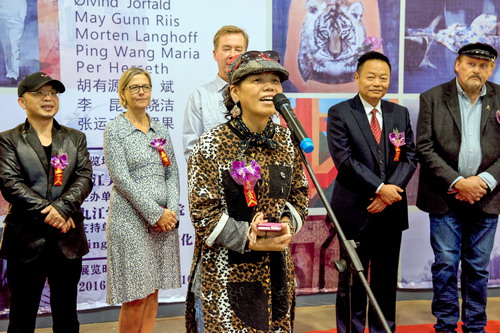 会上,挪威艺术家代表麦格女士作了讲话。