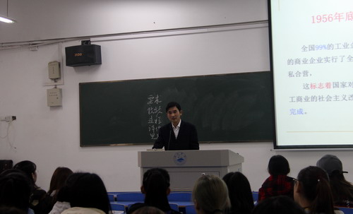 李玉林教授此次讲授的内容是“社会主义改造理论——资本主义工商业改造”,李教授在讲课中系统深入讲述了国家对资本主义工商业改造的目标、方针、方式、过渡形式、步骤、具体过程及意义,阐明了国家对资本主义工商业改造的历史的必然性。