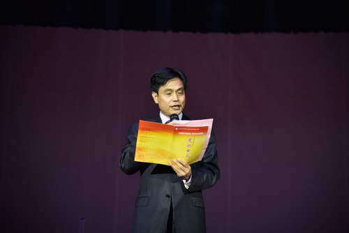 演出开始前,副校长杨耀防致欢迎词。他对南昌职业学院的艺术家和演员们的到来表示热烈的欢迎和衷心的感谢。他指出,高雅艺术是人类文明在发展过程中积淀的优秀经典,具有深厚的审美背景和教化功能,观摩高雅艺术不仅是一种美的享受,更是对我们心灵的净化,情操的陶冶和思想的提升。今年恰逢中国工农红军长征胜利八十周年、中国共产党成立九十五周年,本场演出的民族清唱剧《党的女儿》,将再现中国共产党领导下的工农红军艰苦卓绝斗争下的一个缩影,烈士们的鲜血染红了旗帜,我们应该缅怀为革命牺牲的烈士们,把对烈士学习的敬仰,化作学习的动力,继承先烈们的遗志,不忘初心,继续前行,为实现民族复兴的中国梦而努力奋斗。