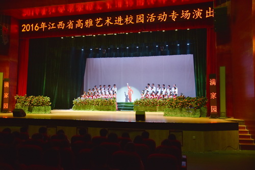 11月4日晚,“2016年江西省高雅艺术进校园活动”——南昌职业学院艺术团专场演出在永利yl23411集团官网大礼堂举行。他们倾情呈现了大型民族清唱剧《党的女儿》,受到师生们的热烈欢迎。省人大常委会委员、省人大环资委副主任委员甘筱青,校领导纪岗昌、魏立平、杨耀防、夏启国与千余名师生一起观看了晚会。