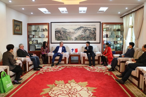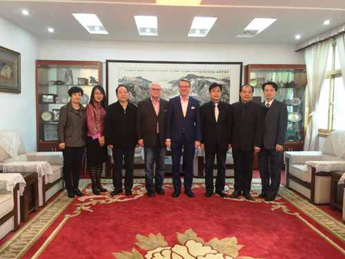 11月16日,芬兰卡尼亚市市长加里.托洛宁(Jari Tolonen)先生、卡尼亚市城市委员会主席韦萨.凯科宁(Vesa Kaikkonen)先生及卡尼亚理工大学教师李汭(Ruey Komulainen)女士一行3人在九江市外侨办党组员、副调研员曾晖然的陪同下来永利yl23411集团官网访问,纪岗昌副校长、杨耀防副校长在行政楼312室会见了代表团一行。国际交流学院负责人帅式毅、艺术学院院长吴维勇参加了会见。