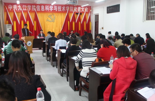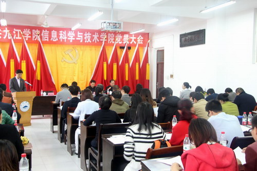 11月19日上午,中共九江学院信息科学与技术学院党员大会在文友楼424会议室隆重召开。校党委委员、副校长夏启国出席会议并讲话,组织人事部副部长金葆金出席会议。信息科学与技术学院教工党支部、学生党支部共计97人参加了会议,大会由信息科学与技术学院院长邓安远同志主持。