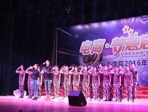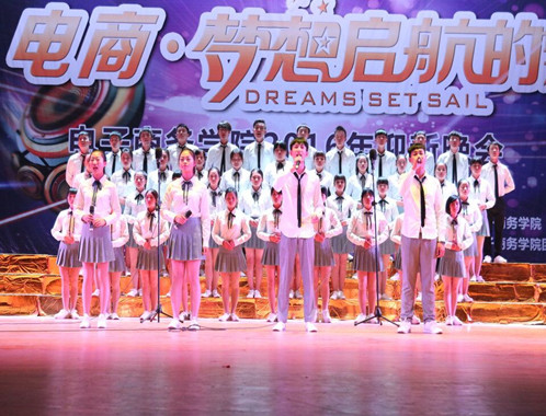11月18日晚,电子商务学院在大礼堂举行2016年迎新晚会。副校长纪岗昌、陶春元、夏启国到场观看了晚会。学工处处长刘平,校团委副书记赵宇剑、电子商务学院党政领导、毕业生就业招聘会企业代表及电子商务学院全体师生观看了演出。