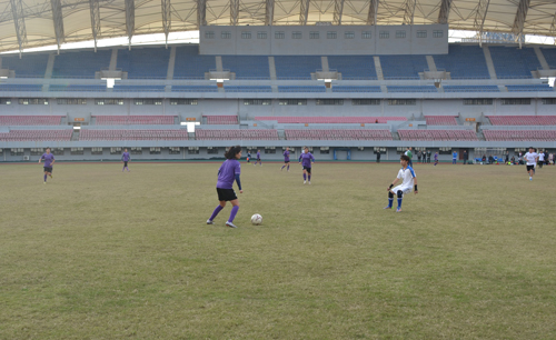 校党委书记郑翔观看校足球队与江西女足友谊赛