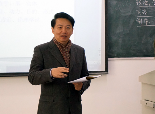 课堂上,沈明明教授的授课生动有趣、通俗易懂,从古到今、从西方到东方,通过一个个小故事,使同学们理解和明白亚里士多德的哲学思想等相关内容。