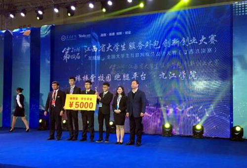“益起吧校园公益平台”获得大赛一等奖,获得1000元的创业基金奖励,“考务信息发布查询平台”以及“家托宝”托管资讯O2O平台项目团队分获大赛二等奖。 “翼速驾”一站式学车驾考平台、“好评”掌上评分小助手、“地铁购票通”以及“大学生创业资讯服务平台”分获三等奖。特等奖项目的指导老师闵娟娟老师被评为“优秀指导老师”的光荣称号。继第三届江西省大学生服务外包创新创业大赛后再创辉煌,为信息学院争光,更为九江学院添彩。