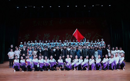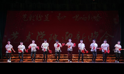 12月15日晚,艺术学院迎新暨2017年元旦晚会在大礼堂举行。副校长王万山、夏启国,校团委副书记赵宇剑,艺术学院党政领导、全体教师老师以及2016级全体新生一起观看了本次晚会。