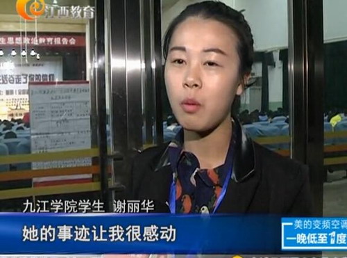 九江学院学生谢丽华:她年龄跟我们差不多大,但是她经历了这么多,还能这么有自信,还能这么开朗乐观,她的事迹让我很感动,
