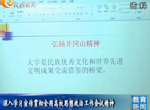 近年来,九江学院围绕立德树人这一根本任务,将井冈山精神的价值追求、红色基因和重要因素有机融入人才培养全过程,要求各班开设井冈山精神红色文化专题课程,运用不同形式的教学方法,提升课堂吸引力。
