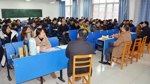 12月28日下午,经管学院在义丰楼召开2016年度处级干部年终述职测评会和党委班子民主生活会,王万山副校长在学校组织人事部副部长周敏、师资科副科长谢丽琴陪同下参会并讲话,经管学院全体教职员工参加了述职测评会。周敏主持述职测评会。