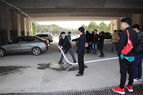 培训后,保卫处消防科进行了由企业参与的实地消防演练。