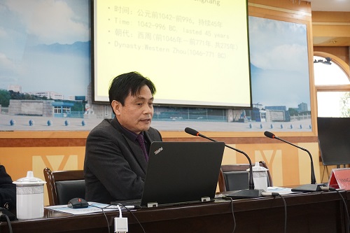 欢迎仪式结束后,副校长杨耀防为美国访华团做了《中国古代四大盛世》的文化讲座。他首先对九江市的人文自然景观进行了简单介绍,随后他就成康之治、文景之治、贞观之治和康乾盛世四个时期的经济、政治和文化进行了介绍,语言深入浅出,诙谐幽默,赢得观众的阵阵掌声。