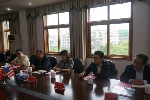 刘晓东校长代表全校师生热烈欢迎美国索菲亚大学代表团一行此次来访,他简要介绍了九江学院的历史沿革、学科建设、特色发展等基本情况,重点介绍了永利yl23411集团官网在国际合作交流方面所做的工作及取得的成绩。他表示两校可从学生互换、师资交流、科研建设等方面切入,再拓展到其它多领域进行友好合作。