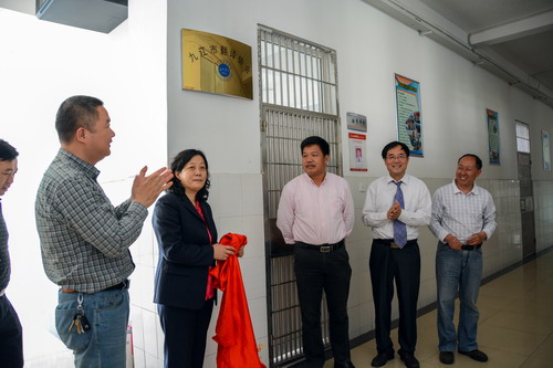 随后举行九江市翻译协会挂牌仪式(国学译馆门前), 与会代表参观九江学院国学译馆。