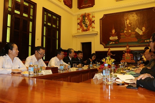 5月23日上午,柬埔寨王家研究院孔子学院柬埔寨司法部汉语中心揭牌仪式在柬埔寨司法部会议室隆重举行。柬埔寨司法部部长昂翁瓦塔纳(Ang Vong Vathna)、副国务秘书秦马林(CHIN Malin),中国驻柬埔寨大使馆大使熊波、政治处主任王德鑫以及柬埔寨孔子学院院长谢莫尼勒(Chea Munyrith)、中方院长夏修龙和院长助理陈晶雯等出席揭牌仪式。