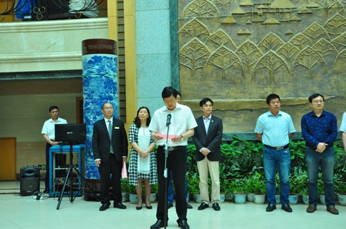 在与会嘉宾的见证下,在热烈的掌声中,陈春生副校长和张国寿副总经理共同为九江学院庐山培训实习基地揭牌。