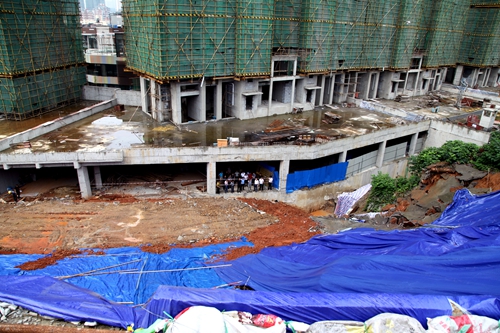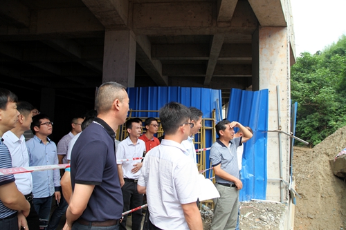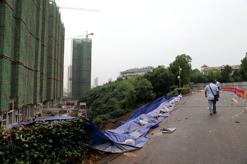 6月26日上午,九江市副市长孙金淼一行到濂溪区“新天地”项目工地,调研查看并了解该项目一护坡山体因连日降雨而再次发生大面积塌方情况,并现场指导防治工作。九江学院党委书记赵伟、副校长夏启国,以及学校党院办、保卫处、基建处、国资处、后勤管理处等相关部门负责人等陪同调研。