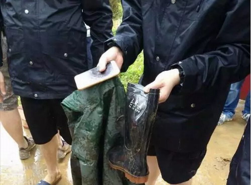 “找到了!找到了!”24日下午4时许,就在大家默默寻找搜救时,不远处的惊呼让大家心头一紧。但遗憾的是,搜救人员在现场只找到了一件雨衣、雨靴和一部手机。经过镇干部指认,这款价值不到1500元的手机,确为匡美建所有,雨靴、雨衣也曾多次见匡美建穿过,且经常放在皮卡车上。
