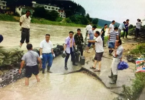 2011年6月匡美建(中)在大桥镇抗洪
