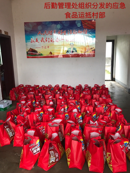 后勤管理处迅速连夜组织党员干部购买了土豆、胡萝卜、榨菜、洋葱、面条等应急食品。并按照受灾的80户群众进行分袋分装。