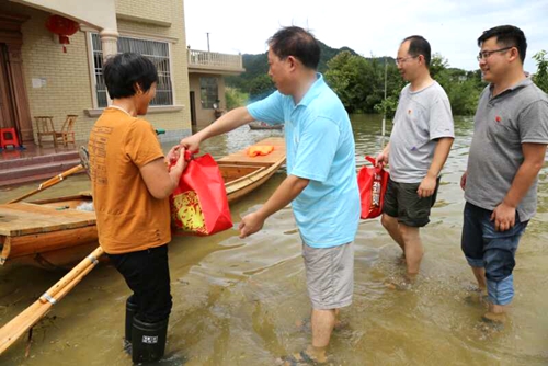 学校驻村干部向学校汇报灾情后,查振华副校长要求扶贫工作队、驻村第一书记根据当地具体安排,迅速参与抗洪救灾,同时确保人生安全。得知许多村民无法交通通行,许多菜地被淹,饮食出现了极大的问题,他要求扶贫工作队协同后勤管理处购买抗洪救灾应急物资紧急送往灾区。