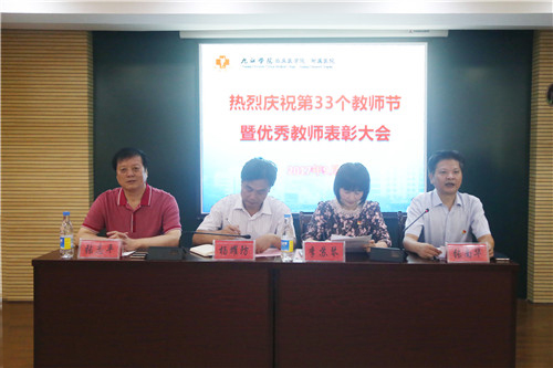 9月8日上午,在第33个教师节来临之际,副校长杨耀防,组织人事部副部长李苏琴到临床医学院/附属医院看望一线教职员工,向大家致以节日祝福和问候。该院在办公楼四楼会议室举行了庆祝第33个教师节暨优秀教师、优秀教育工作者、优秀班主任和先进集体表彰大会。临床医学院/附属医院院长张志平、党委书记张南华及其他在家班子成员,各临床教研室负责人及受表彰人员,相关职能部门人员参加了大会。会议由该院党委书记张南华主持。