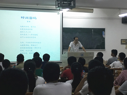 “我为什么来到这座城市,怎样走进这幢大楼,五年前十年前二十年前,一碟次第年轻的影像,一沓疲惫不堪的渴望;一切都起始于最初的渴望,现在的我,正仰卧于儿时的梦里;明天的事,有如丝瓜藤上的蝴蝶,偶尔也能捉到一只,其它的,全都飞走了,全走比捕捉到的更漂亮……”课上,孙小明书记深情朗诵自己创作的诗——《时间密码》,这首关于梦想的诗即刻触动了学生的心房,耐人寻味而使学生兴趣盎然,一下子使思政课堂的气氛一改枯燥刻板,课堂气氛轻松愉悦而意味深刻。孙小明书记在课上与刚刚踏入校园校门的同学们分享了自己的人生感悟,并通过以赠送学生人生感言的方式讲授课程,主要有以下8点。一、早日醒悟,事业加速度。他指出,大学的特点是自主学习、自主打理、自主锻炼,同学们要认真刻苦,时刻保持自主性、行动力。二、每一门功课都很重要。大学里要树立正确的学习观,综合素质的提高与专业学习同等重要,越是与专业不相干的课程,越有可能成为我们将来职业发展的重要因素,未来的职业发展模式应当为依托专业就业,凭借素质发展。三、让优秀成为一种习惯。孙书记教育广大同学要有意识地养成一种追求完美的心态,做什么事都要有一种希望得到自己和别人赞赏的内在愿望。此外,一个人在一个圈子里被赞赏几次以后,内驱外激,做事的标准自然也就高了,坚持一段时间,优秀,就成为了一种习惯。四、靠前坐,脱颖而出。他激励同学们,不论是上课还是开会,靠前坐是一种认真的态度,靠前坐一种良好的自我表现,靠前坐是一种有效的自我监督的方式。五、做好不感兴趣的事。他说道,只有把不感兴趣的事做好了,才有资格做感兴趣的事情,一个人能力的大小不仅取决于他对感兴趣的事做得如何,能不能把不感兴趣的事做好,也是管理者要考察的范围,更是群众对你的期待。此外,不感兴趣的事情,往往做着做着就感兴趣了。六、配合管理成管理。他教诲同学们要树立集体意识,要自觉服从和配合组织的安排与管理,与管理者对着干是最不可取的职业态度。七、所有的条件都是有利条件。他希望同学们不要怨天尤人,学会用乐观正面的心态面对不利条件,学会脚踏实地,严格自我要求,没有有利条件时创造有利条件,拥有有利条件时将有利条件切实转换成自身优势。八、一切都还来得及。惰性有一种得寸进尺的特性,今天的放松等于明天更放松。他教育广大同学们既不要悔恨过去,也不要对未来畏惧犹豫,学会把握当下,勤奋用心得过好每一天,一切都还来的及。