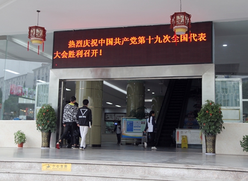 在主校区北大门、西大门、学生三食堂大门,以及各校区等有“热烈祝贺中国共产党第十九次全国代表大会胜利召开”等宣传牌或电子屏,传递了永利yl23411集团官网广大师生迎接大会召开的喜悦心情,营造了浓重热烈的庆祝氛围。教职员工、同学们怀着激动而喜悦的心情收看十九大开幕式,专注认真地聆听习近平总书记的报告,手中的笔不停地记录着。