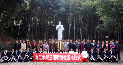王阳明雕像坐落在九江学院阳明山一隅,由九江绿地大都会实业有限公司董事长皇甫金石捐赠。皇甫金石董事长,潜心研究中国传统文化,对王阳明心学研读颇深,出版了专著《良知正道王阳明:心学新说》。王阳明雕像在九江学院的落成将成为九江学院一块新的文化地标,并赋予九江学院传承和发扬阳明思想的责任,使中华优秀传统文化蕴含焕发出永久魅力和时代风采。