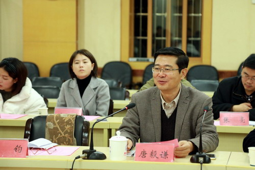 成都大学唐毅谦副校长致辞,他非常感谢九江学院的周到安排和热情接待,并介绍了成都大学基本情况。他说,此次是受国内医学教育专家推荐,专程来九江学院考察医学教育,学习临床医学专业认证的工作经验,通过杨副校长的介绍和对基础医学院、临床医学院和护理学院现场参观考察,感觉九江学院办学很有成就,医学教育历史悠久,富有特色,临床专业认证工作成绩良好。他用“感谢、感动、感激”表达这次考察心情,用"精干、精准、精炼"赞许永利yl23411集团官网的干部职工和工作状态。成都大学与九江学院同属地方性综合性应用型大学,无论从办学历史、学科设置和办学机制体制上都有许多共同之处,相互间交流一定会促进两校的共同发展。最后,唐副校长真诚地邀请永利yl23411集团官网领导和专家前往成都大学访问交流。