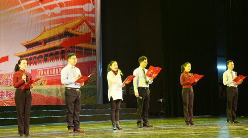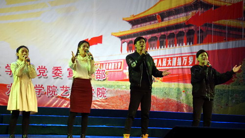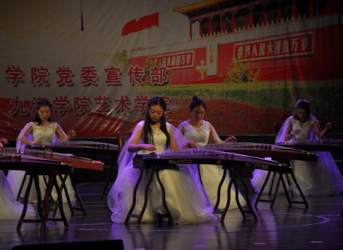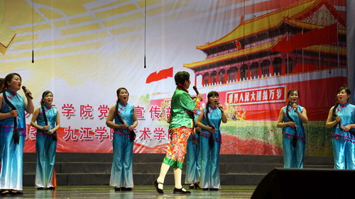 由永利yl23411集团官网艺术学院学生表演的歌伴舞《不忘初心》弘扬主旋律,宣传正能量,激发了广大党员爱党、爱国的真挚情感,更展示出九江学院人昂扬向上的精神风貌。五彩缤纷的扇子在舞者手上翩翩起舞,青春的律动将大家带进了春的世界,优美的舞蹈和动情的演唱深深地打动了现场观众。