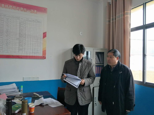一到扶贫点村部,查振华在驻村工作队队长燕红波等陪同下,详细询问脱贫工作进程和有关情况,查看了扶贫办公室和扶贫车间,听取了驻村第一书记关于退出贫困村省第三方评估迎检工作的情况汇报,仔细翻阅了《贫困村退出材料汇编》、《扶贫工作手册》、《贫困户档案》、《九江学院扶贫工作资料汇编》及各类材料。他强调,一定要针对贫困村退出9项指标,再次排查,确保脱贫验收如期完成。