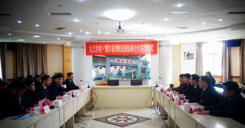 1月9日上午,九江学院与湖口县人民政府战略合作签约仪式在永利yl23411集团官网行政楼一号会议室举行。校党委书记赵伟,校长刘晓东,校党委副书记魏立平,副校长纪岗昌、陈春生、九江市政协副主席严平;中共湖口县委书记李小平,湖口县县长鲍成庚,湖口县委常委、组织部部长梅媚,县委常委、县高新技术产业园区党委书记柯景坤,县政府副县长张水兰以及永利yl23411集团官网相关部门负责人出席了签约仪式。副校长陈春生主持仪式。