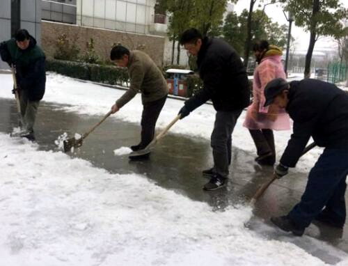 清扫工作结束后,夏启国副校长还慰问了校区值班人员,提醒他们做好值班工作的同时也要注意雨雪天自身安全。虽然降雪带来了严寒,但是校领导的关怀却暖了工作在第一线教职工的心。