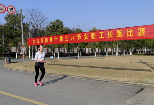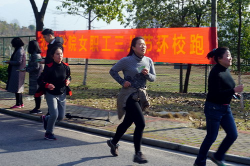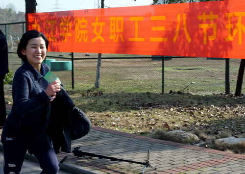 下午3时50分,第十届庆祝“三八”妇女节校园环跑活动开始。校党委副书记魏立平作了简短讲话,他代表学校党委和行政向全体女教职工致以节日的问候和热烈的祝贺!祝全校女教职工节日快乐,家庭幸福,工作顺利,青春常在!校工会主席金葆金宣读了环跑规则,希望大家相互帮助,注意安全,祝愿大家在本次环校跑活动中取得优异成绩。随着校党委副书记魏立平的一声令下,只见女教工们犹如离弦之箭飞奔出去,她们反应敏捷,起跑干净利落。大家从体育训练馆出发,途经红楼、厚德楼、逸夫图书馆、拓展训练基地、两南山、室内田径馆、紫阳北路,最后到达校园西大门,总赛程约3000余米。